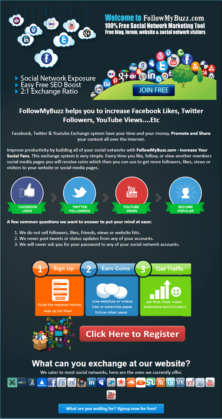 With FollowMyBuzz.com you can get free facebook likes, twitter followers,YouTube Likes, youtube views,Google+ Circles, subscribe, likes, Pinterest Followers, Instagram Likes, vine, dailymotion views, Instagram Likes, Shortened Links, adf.ly links, Ask.fm Likes, Askinger Likes,SoundCloud Followers, stumbleupon followers,Website Hits.